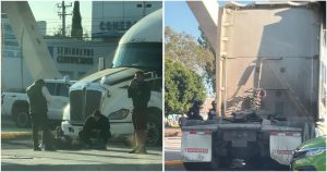 Celaya, Gto.– Un motociclista resultó lesionado luego de ser arrastrado por la cabina de un tráiler en la intersección de