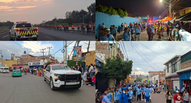 Celaya, Gto., a 7 de octubre del 2025.- La Secretaría de Seguridad Ciudadana de Celaya (SSCC) a través de la dirección de Protección Civil y Bomberos, brindó cobertura y acompañamiento a los Peregrinos Ciclistas del Bajío rumbo al Tepeyac, pertenecientes a la Diócesis de Celaya, y procedentes del municipio de Dolores Hidalgo, Guanajuato.
