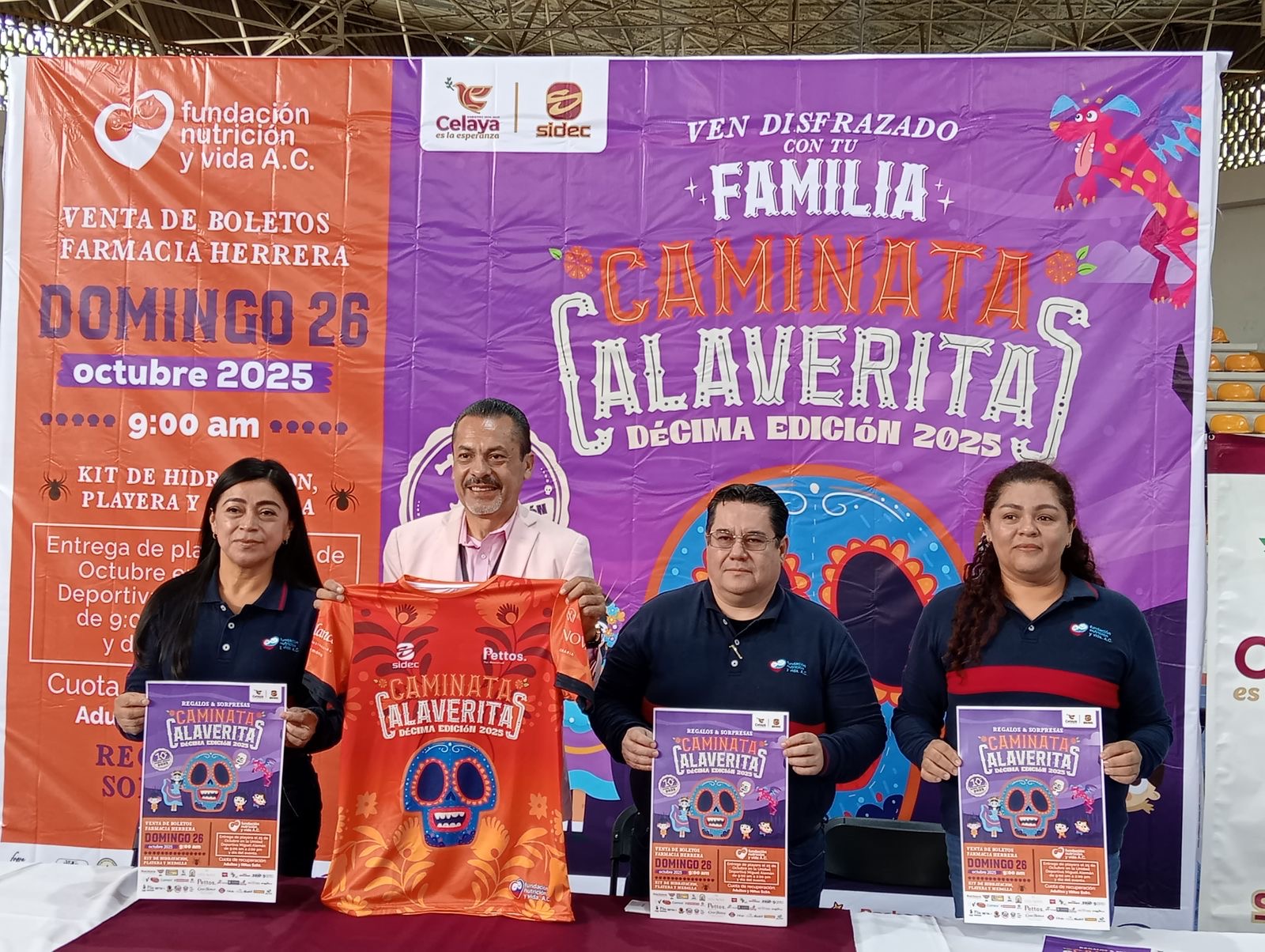 Celaya, Gto., a 06 de octubre del 2025.- Fue presentada la décima edición de la caminata Calaveritas, organizada por la Fundación Nutrición y Vida A.C., a celebrarse el domingo 26 de octubre, en punto de las 9:00 horas, en las instalaciones de la Deportiva Miguel Alemán Valdés, esperando la participación de mil personas.