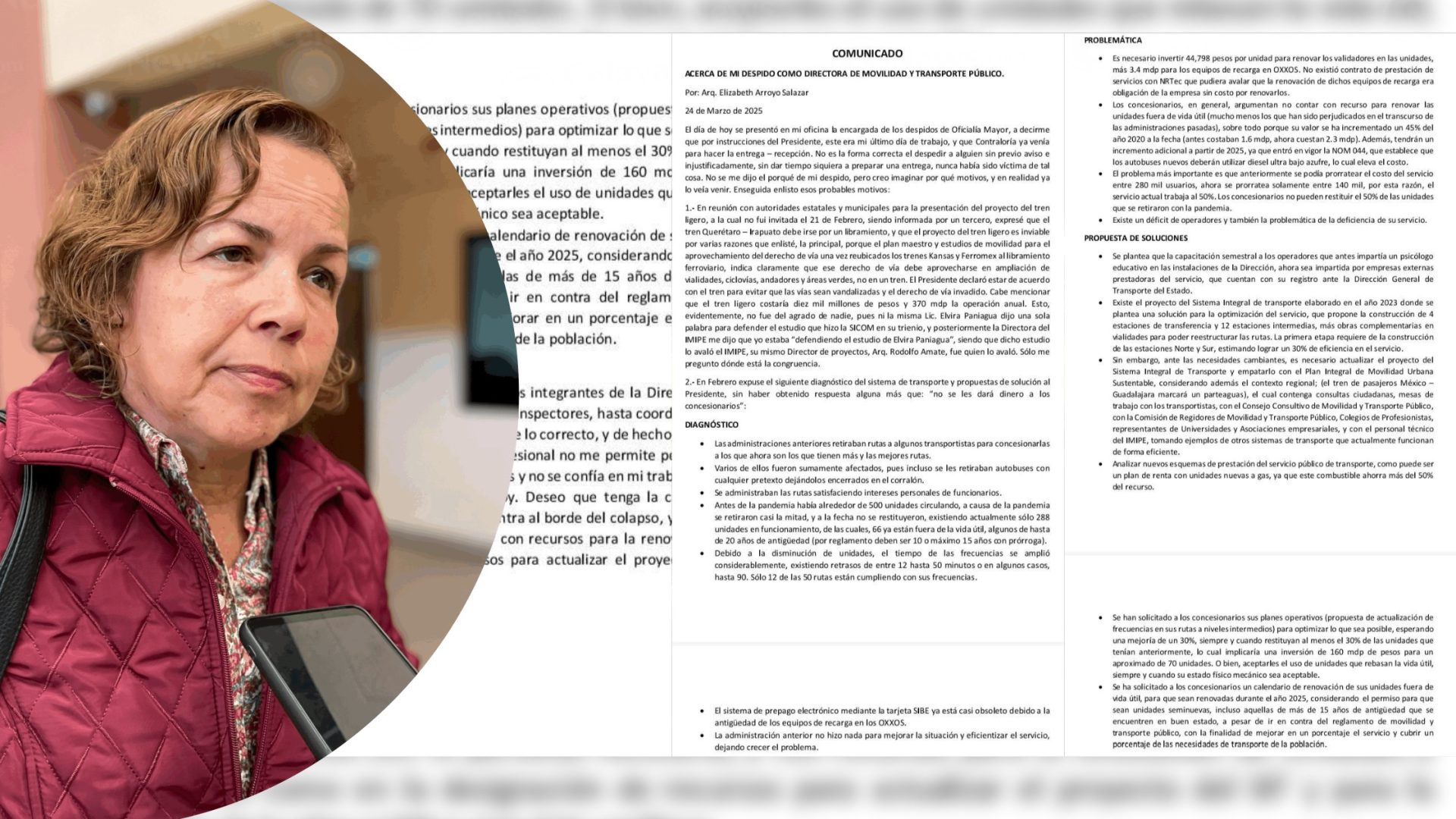 La ex directora de Movilidad y Transporte Público de Celaya, Elizabeth Arroyo Salazar, denunció que su destitución fue abrupta e injustificada.