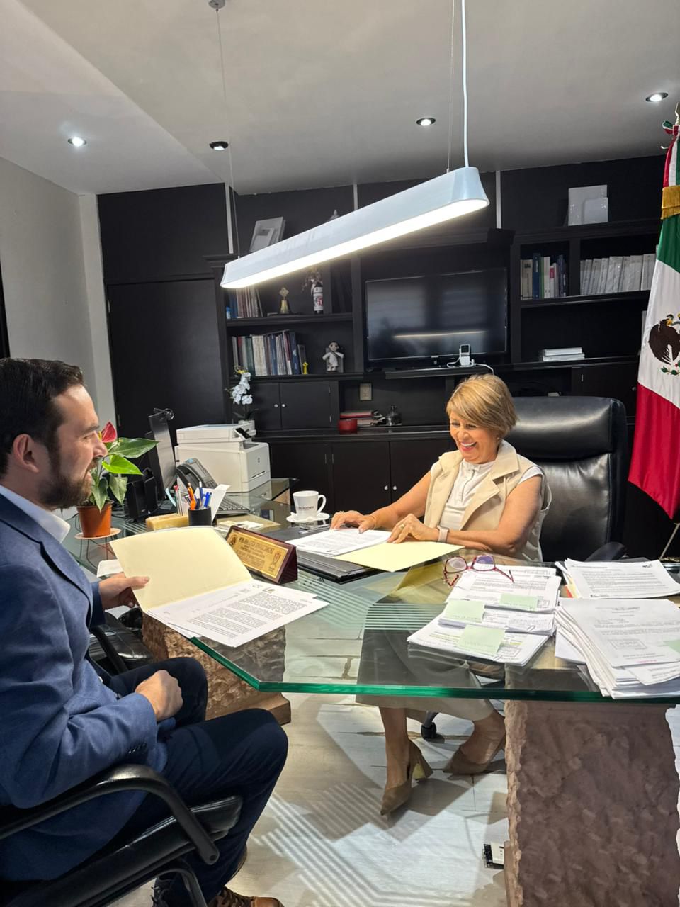 León, Guanajuato. 24 de abril de 2026.- El Diputado Federal Alan Sahir Márquez Becerra sostuvo una reunión de trabajo con la titular en Guanajuato de la Secretaría de Infraestructura, Comunicaciones y Transportes (SICT), Irma Leticia González para dar seguimiento a planteamientos enfocados en mejorar la seguridad vial y la movilidad de León.