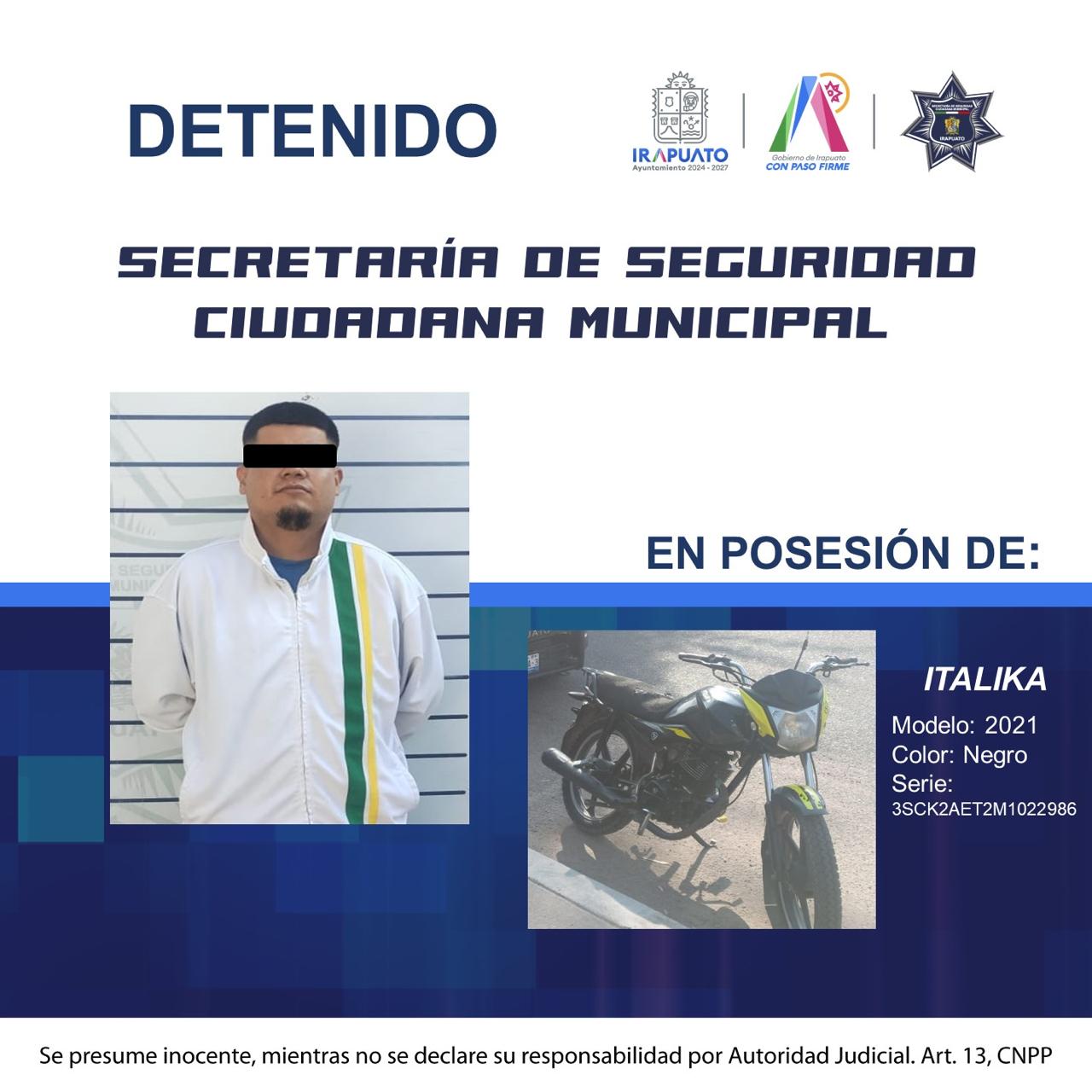 Municipal (SSCM) de Irapuato, lograron la detención de José “N” quien, sin portar