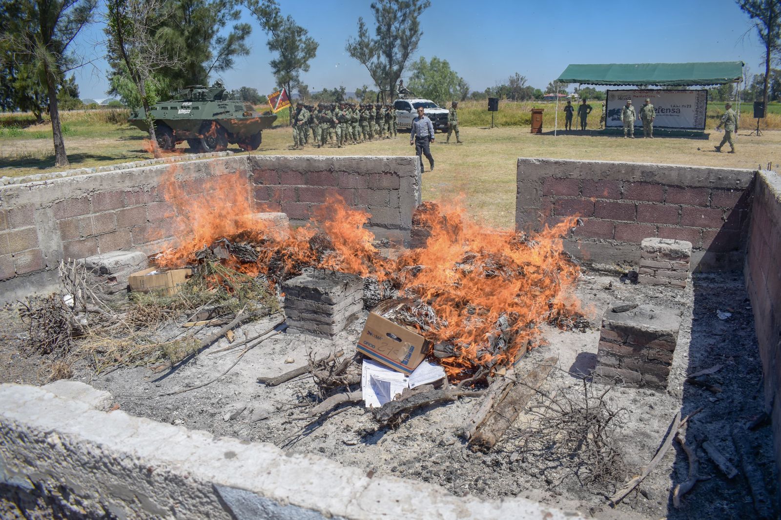 Villagrán, Gto.-La Secretaría de la Defensa Nacional realizó la incineración de más de 200 kilos de narcóticos, decomisados mediante diferentes operativos que se han realizado en el estado de Guanajuato. La ceremonia se llevó a cabo en las instalaciones del cuartel militar ubicado en la comunidad de Sarabia en el municipio de Villagrán, a la cual asistieron el coronel de arma blindada Cesár David Fuentes Alba, Comandante del sexto regimiento, quien además estuvo acompañado por el Teniente Coronel Policía Militar Alberto Anzaldo Borjas, la licenciada Maria Elizabeth Reyes Ortíz coordinadora de asuntos jurídicos en representación de la Secretaría de Salud de Guanajuato.Además estuvieron Nelly Valadez Pérez de la coordinación de asuntos jurídicos y María del Carmen Ruíz también en representación de gobierno del estado, quienes atestiguaron y dieron fé a la incineración de narcóticos, los cuales han sido decomisados de grupos criminales mediante diversos operativos.Fueron un total de 201.62 kilogramos, entre los cuales se encuentran en su mayoría marihuana, cristal, cocaína y metanfetaminas.La incineración se hizo en un espacio abierto y conforme a los requerimientos establecidos por la SEDENA para el manejo de este tipo de sustancias.