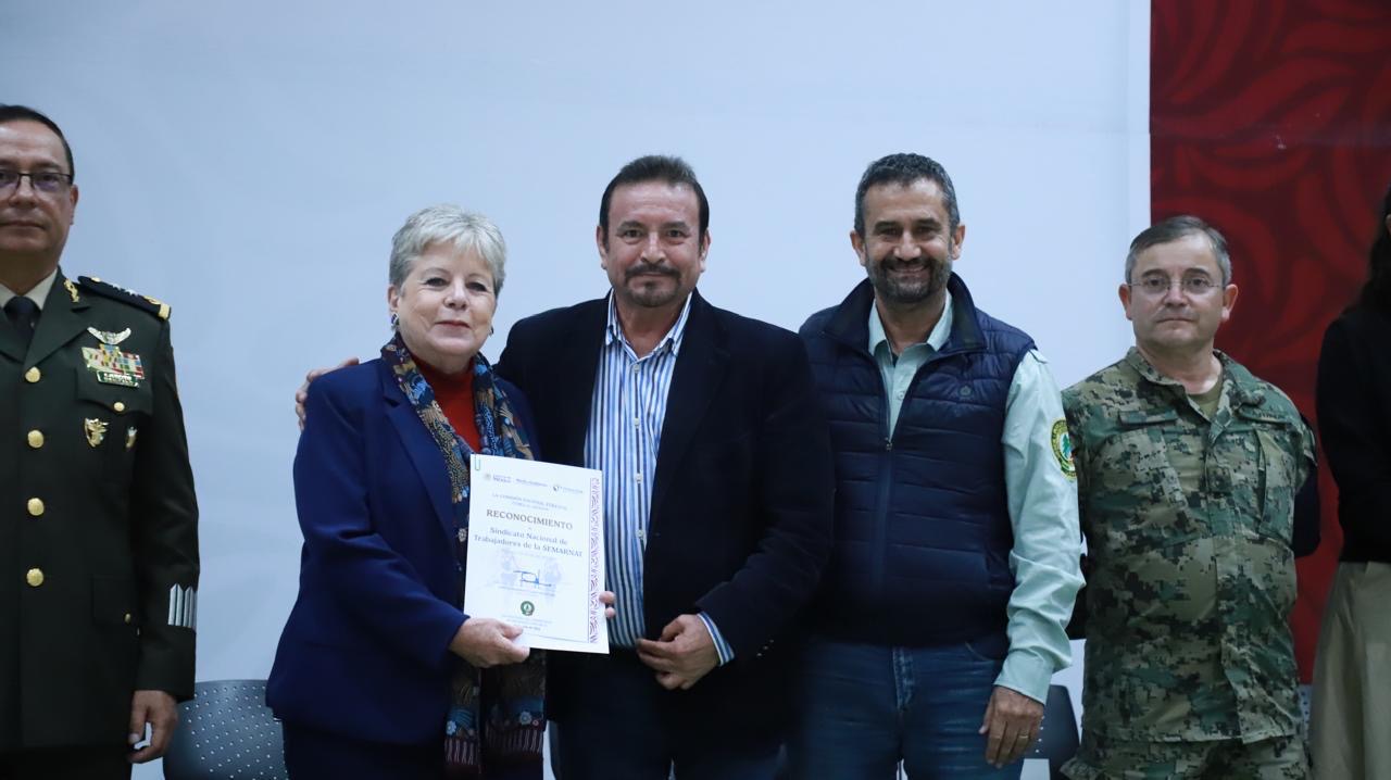 CDMX. 12 de Septiembre de 2025.- Con la finalidad de dar a conocer los treinta años del Sindicato Nacional de Trabajadores de la SEMARNAT, el Secretario General de esta organización, Santiago García López, hizo un reconocimiento a todos sus agremiados entre los que destacó a los brigadistas de la Comisión Nacional Forestal por su labor en el combate de incendios forestales que a principios de este año se registraron tanto dentro como fuera del país.