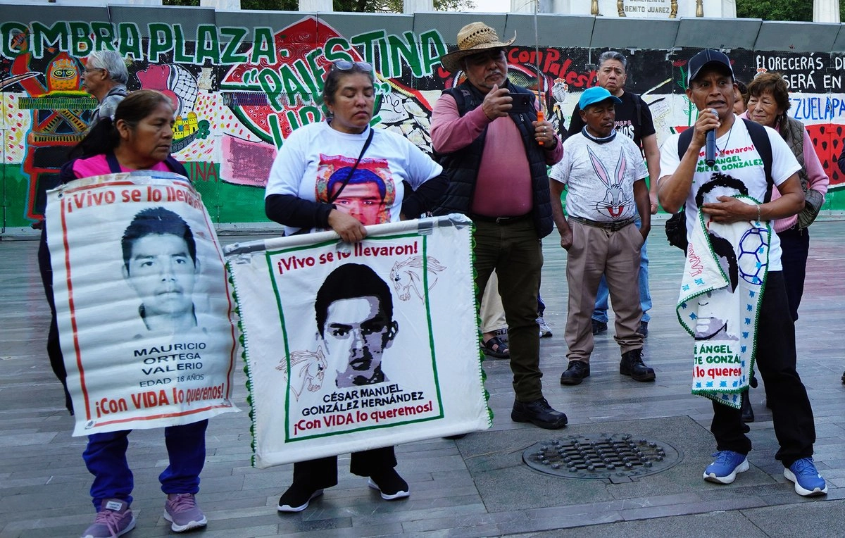Chilpancingo, Gro a 22 de Marzo de 2026. Padres de familia de los 43 normalistas de Ayotzinapa desaparecidos en Iguala acompañados de funcionarios federales, recorrieron el viernes la funeraria El Ángel, ubicada en la carretera federal México-Acapulco, donde les informaron que durante un cateo anterior hallaron una bolsa con segmentos óseos de 2014, año desde el que se desconoce el paradero de los estudiantes.