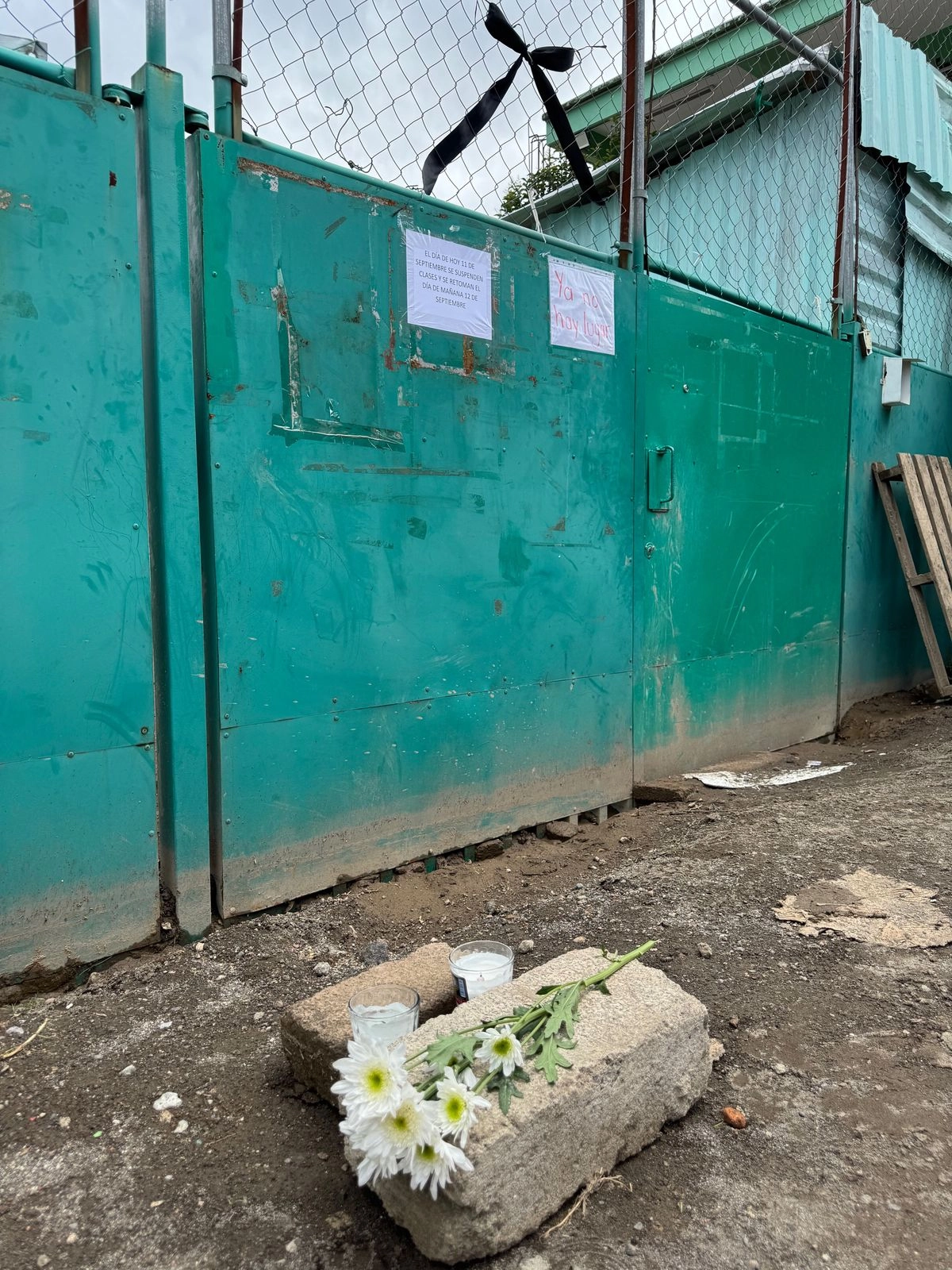 Kevin Samuel Guzmán Jiménez, alumno de primer semestre, arribó a las puertas de su escuela para colocar un ramo de flores en honor de su profesor. “Sí, lo conocí, era muy buena persona. Impartía matemáticas y educación física…Era muy buen profesor, no faltaban las risas en el salón de clases”.