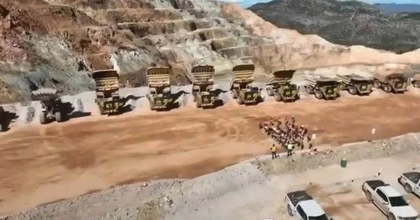 El video fue grabado con un dron al interior de las instalaciones de la mina de oro, y en dichas imágenes se observa a alrededor de 50 trabajadores formados en una de las áreas operativas, mientras a un costado permanece maquinaria de excavación detenida. Desde lo alto, el dron capta a los mineros levantando los brazos y realizando movimientos coordinados en señal de protesta.