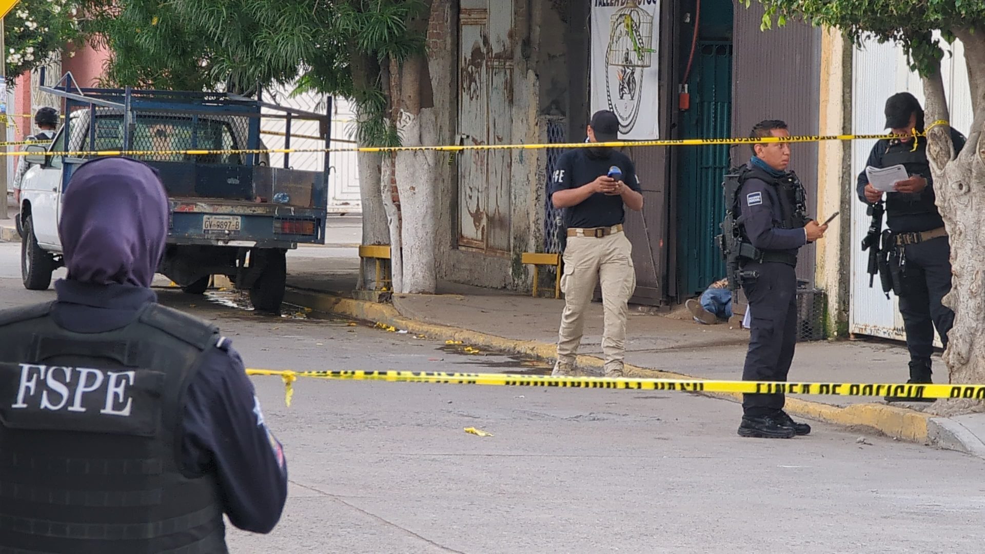 Al lugar se trasladaron elementos de la Policía Municipal y paramédicos de la Secretaría de Seguridad Ciudadana. Al llegar, confirmaron que en la entrada del taller se encontraba un hombre con visibles heridas de bala, tirado en el suelo.