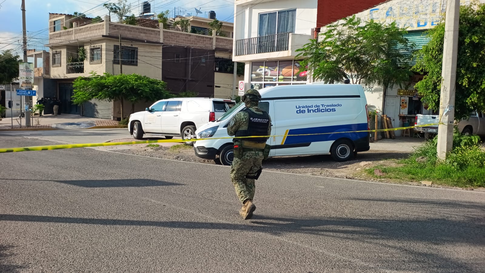 La zona fue asegurada con cinta amarilla para evitar la alteración de la escena, mientras peritos de la Fiscalía General del Estado procesaban evidencias y recababan indicios para integrarlos a la carpeta de investigación.