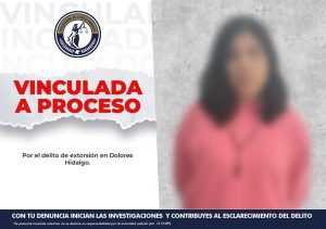 GUANAJUATO GTO., A 31 DE MARZO DE 2026.- La Fiscalía General del Estado de Guanajuato informa avances en la investigación por el delito de extorsión agravada ocurrido en el municipio de Dolores Hidalgo, logrando la vinculación a proceso de ALEGRÍA GALILEA “N”, quien presuntamente se encuentra relacionada con los mismos hechos por los que previamente fue vinculado otro sujeto.