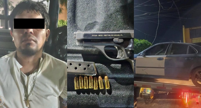 Al descender, a simple vista se le encontró un arma de fuego, por lo que se le informó que quedaría detenido por el hecho.