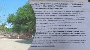 “Por medio del presente, me permito saludarle cordialmente y a la vez solicitar de su valioso apoyo en materia de seguridad pública, con motivo de la ejecución de la obra denominada REHABILITACIÓN DE LA RED DE ALCANTARILLADO SANITARIO”.