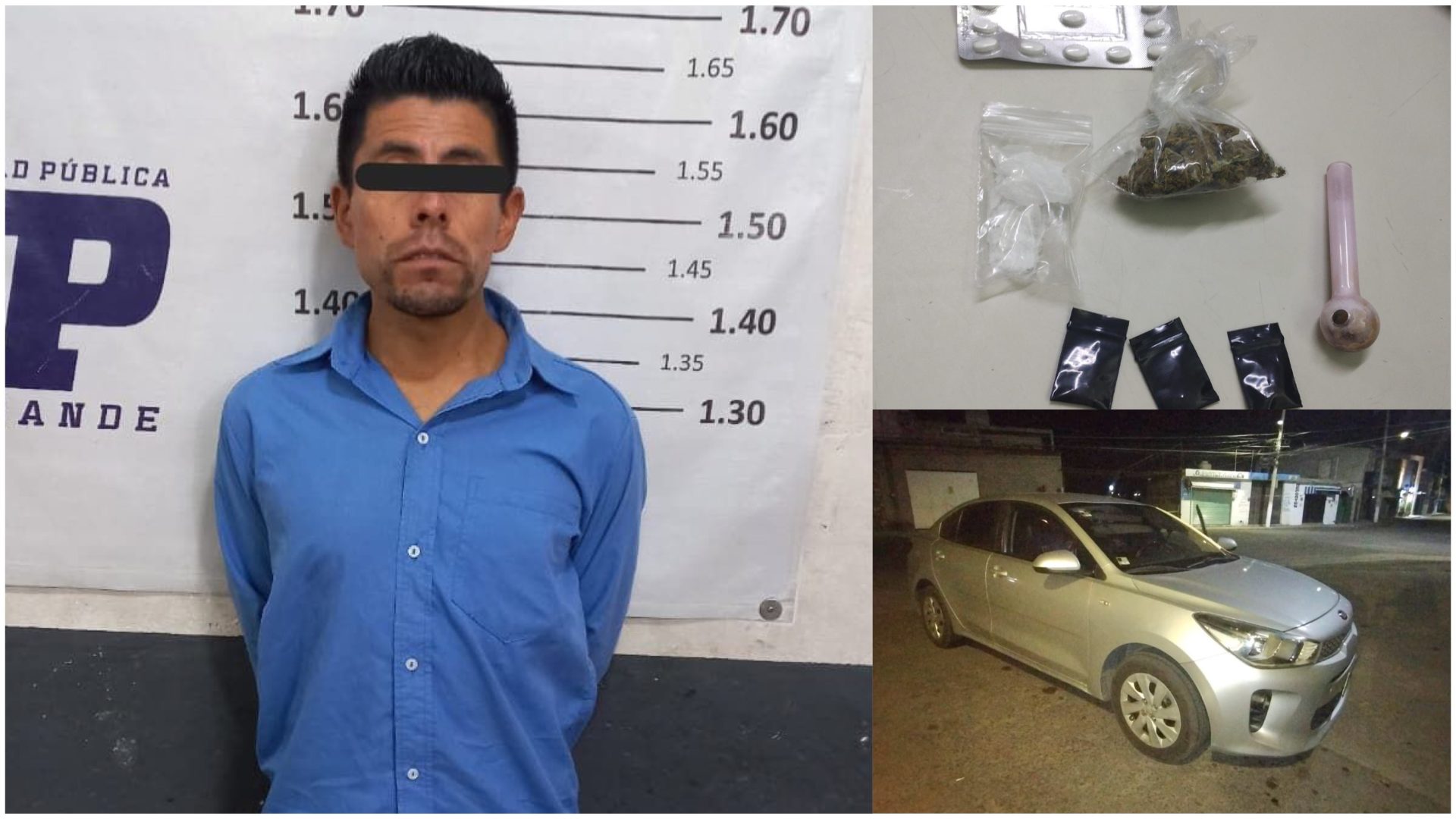 El hombre, se identificó como Moisés de 38 años y dijo trabajar como conductor para una aplicación. Sin embargo, cuando los Policías hicieron una revisión en el vehículo, detectaron una pipa que se usa para consumo de sustancias ilícitas.