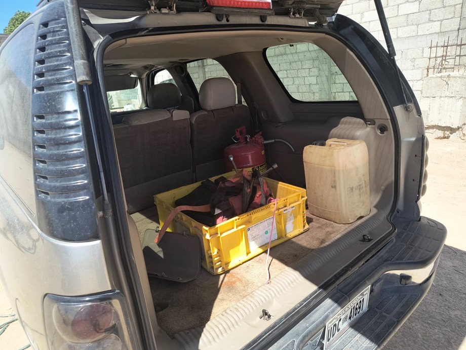 Al percatarse de la presencia de la autoridad, las personas se dieron a la fuga y al acercarse los elementos al lugar, percibieron un olor a combustible y observaron contenedores que contenían líquido, así como cuatro tractocamiones y cuatro cajas secas.