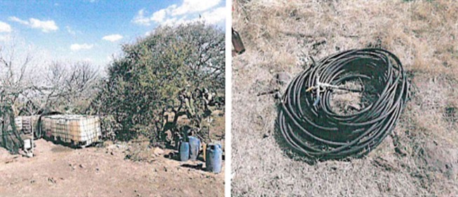 A Juan “R”, los elementos de la Defensa le aseguraron tres mil 581 litros 92 mililitros de hidrocarburo dictaminado como gasolina regular, 121 litros de diésel automotriz, 13 rollos de manguera de plástico de alta presión y 10 contenedores con capacidad de mil litros cada uno.