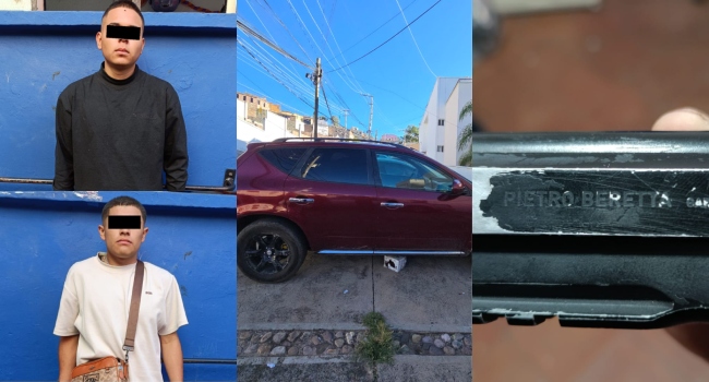 Guanajuato, Gto., 12 de octubre de 2025.- La Secretaría de Seguridad Ciudadana detuvo a dos jóvenes originarios de Irapuato por la presunta portación de un arma de fuego.