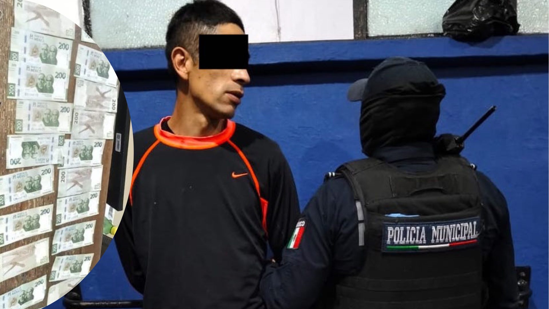 Ante el juez calificador en turno se realizó una inspección preventiva, encontrando entre sus pertenencias una bolsa de mujer que contenía 6 mil 450 pesos y varias pipas con residuos de presunta droga cristal.